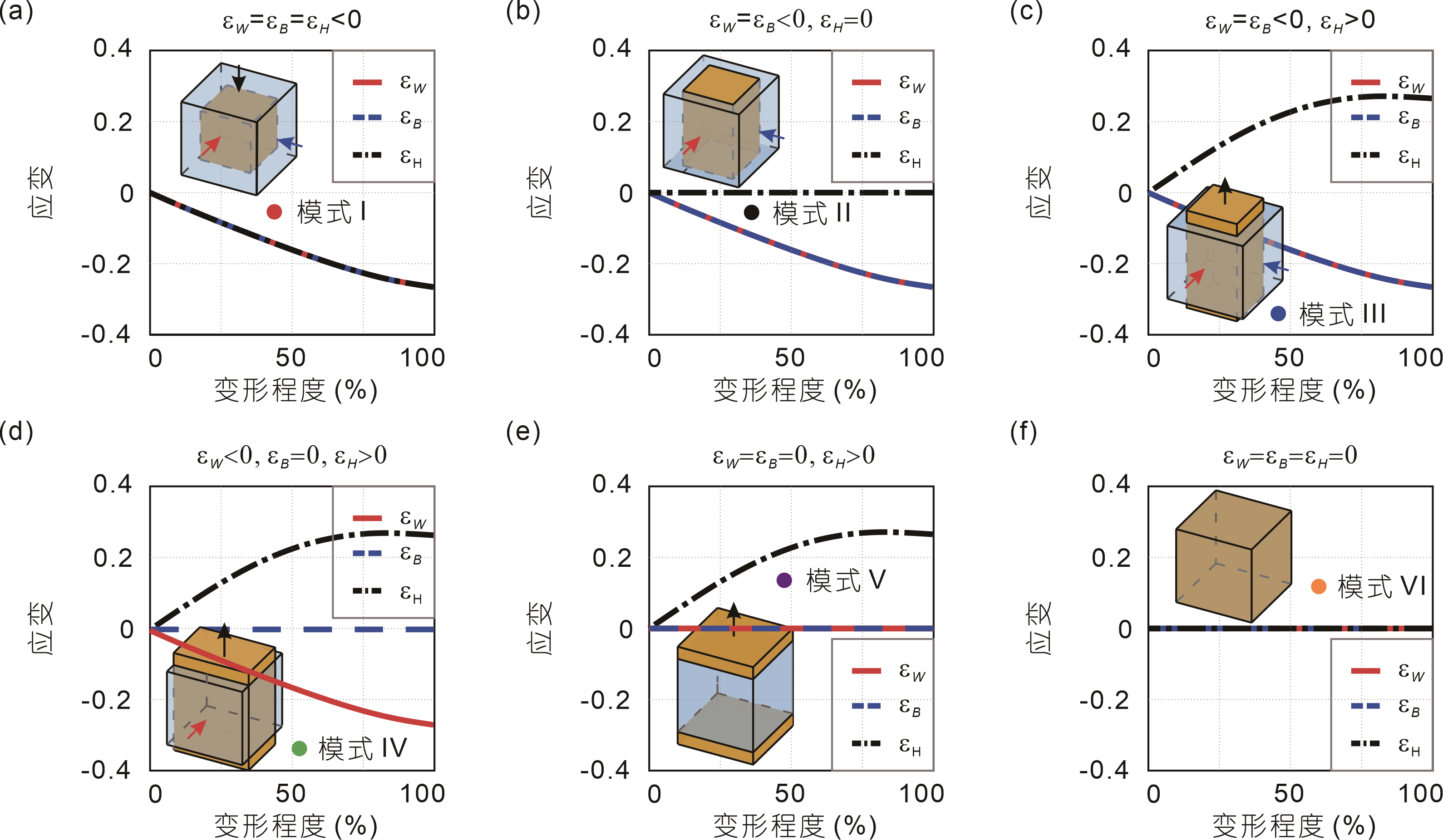 From: Date: 2025-12-25 The pursuit of programmable matter is reshaping materials science. Mechanical metamaterials, deriving properties from architecture rather than composition, have unlocked unconventional capabilities like negative compressibility. Among these, Poisson’s ratio is critical for deformation mechanics and energy absorption. While researchers have engineered metamaterials with fixed Poisson’s ratios using re-entrant lattices or origami, achieving sign-switchable Poisson’s ratios within a single structure remains a challenge. Existing solutions are mostly limited to two-dimensional systems or suffer from coupled orthogonal kinematics. Consequently, a truly three-dimensional system capable of continuously spanning the full spectrum of Poisson’s ratio—covering all deformation modes across principal directions—has yet to be realized. Recently, the team of Professor Yan Chen of Tianjin University developed a novel class of reconfigurable modular origami metamaterial based on orthogonally decoupled kinematics. Through a digital strain-state encoding strategy, the team successfully realized a full spectrum of Poisson’s ratio responses within a single structural system. The study, titled “Reconfigurable modular origami metamaterial with full-spectrum programmable Poisson’s ratio” was invitedly published online on December 18, 2025, in SCIENTIA SINICA Physica, Mechanica & Astronomica. The design is inspired by a spatial linkage mechanism with motion bifurcation. The researchers mapped this mechanism's parameters onto origami components—rectangular panels, triangular panels, and an octagonal prismatic base—giving the unit a single degree of freedom (DOF). As shown in Fig. 1, the unit features multiple motion branches. It can evolve along path M1 to achieve symmetric contraction (-, -) or expansion (+, +), or along path M2 to exhibit antisymmetric mixed states (-, +) and (+, -), demonstrating rich bifurcation characteristics. Figure 1. A 2D module assembled from four identical basic units around a central vertical axis. To extend this reconfigurability, four identical units are assembled into a closed 2D module (Fig. 1). Due to the system's four-fold rotational symmetry, the deformation is orthogonally decoupled. As illustrated in Fig. 2, each direction exhibits three distinct states. When both rectangular panels move toward the octagonal prismatic base, the width W-1 monotonically decreases with increasing deformation degree, corresponding to a contracting response. When one panel moves toward and the other away from the base, the opposing motions balance each other, maintaining a constant dimension W0 in that direction. Conversely, when both panels move away from the base, W1 increases continuously, producing an expanding behavior. To formalize these three deformation behaviors, a digital strain-state encoding scheme is introduced, in which the macroscopic response along each direction is represented by a discrete variable Sx∈{-1, 0, +1}, corresponding respectively to contraction (-1), zero strain (0), and expansion (+1). The same encoding applies independently along the y-axis (breadth B), yielding Sy∈{-1, 0, +1}. Because the motions of the two orthogonal pairs of panels are kinematically decoupled, the overall in-plane deformation state of the module can be expressed as the C(Sx, Sy). Figure 2. Orthogonally decoupled deformation states of the 2D module. Based on this digital encoding strategy, the configuration space of the 2D module is summarized into four representative deformation modes, as shown in Fig. 3. Figure 3. Four representative deformation modes of the 2D module. Mode I corresponds to the continuous deformation from the bifurcation configuration ⑨ to either the fully contracted configuration ① or the fully expanded configuration ⑤. In this mode, strains along both principal axes share the same sign and magnitude, as shown in Fig. 4(a) and 4(b). This results in a constant Poisson’s ratio of −1, exhibiting typical auxetic (negative Poisson’s ratio) behavior. In Mode II, the module transitions from configuration ⑨ to ② or ⑥. Deformation occurs solely along one principal direction while the orthogonal dimension remains unchanged. As illustrated in Fig. 4(c) and 4(d), this mode corresponds to a zero Poisson’s ratio response. Mode III occurs during the transition from configuration ⑨ to ③ or ⑦. Here, the strains along the two principal directions have opposite signs—one contracts while the other expands. The strain curves in Fig. 4(e) and 4(f) indicate that this mode corresponds to a positive Poisson’s ratio behavior, characteristic of conventional materials. In contrast, Mode IV corresponds to the transformation from configuration ⑨ to ④ or ⑧. In this mode, strains in both principal directions are zero, as shown in Fig. 4(g) and 4(h). The overall dimensions of the module remain constant; internal components merely undergo geometric rearrangement without introducing macroscopic deformation. This mode-dependent deformation behavior demonstrates that the Poisson’s ratio in a single 2D module can be deterministically programmed through purely geometric reconfiguration, thereby spanning the full spectrum of Poisson’s ratio, including negative, zero, and positive values. Figure 4. Strain responses of the 2D module under four representative deformation modes. By connecting six 2D modules using L-shaped linkages, the study further constructed a 3D cubic metamaterial (Fig. 5). Theoretical analysis indicates that this structure possesses 27 kinematically compatible configurations, which can be summarized into six representative deformation modes (Fig. 6). These modes correspond to C(-1, -1, -1), C(-1, -1, 0), C(-1, -1, 1), C(-1, 0, 1), C(0, 0, 1), and C(0, 0, 0), respectively. Each mode represents a specific combination of encoded states along the three principal directions, thereby enabling programmable control ove