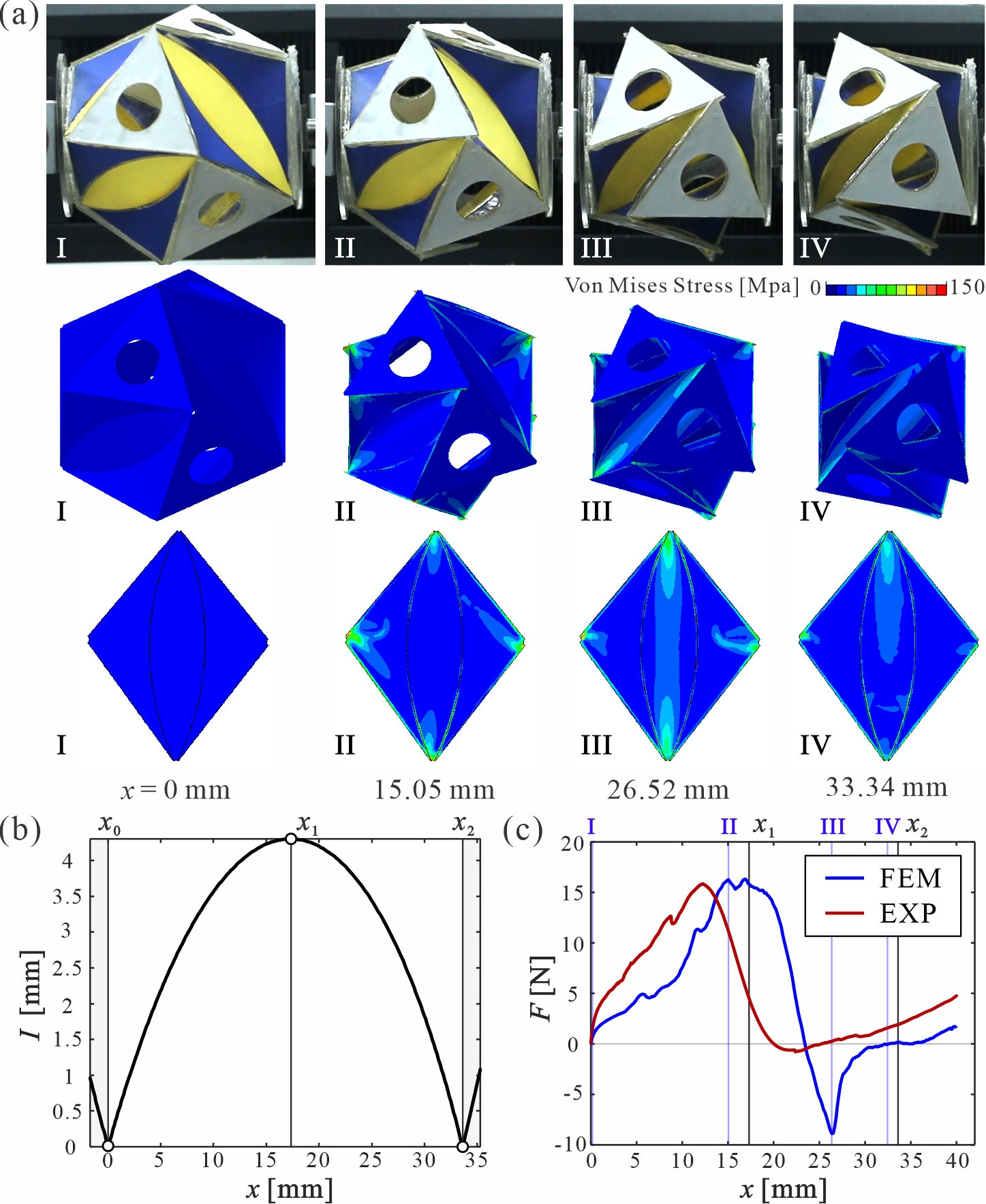 From: Date: 2026-02-26 Deployable polyhedral structures have demonstrated broad application prospects in aerospace, architectural structures, and soft robotics owing to their geometric regularity and high volumetric folding ratios. Among these, the transformation between regular convex polyhedrons, particularly Platonic and Archimedean solids, remains a fundamental challenge in the field. Existing deployable designs predominantly rely on linkages or kirigami mechanisms, which struggle to maintain a closed and continuous surface during folding. This not only limits their applicability in enclosure and environmental protection scenarios, but also prevents configuration locking at target states without external loading. Curved-crease origami, which deforms via both crease folding and panel bending, offers a broader geometric design space than straight-crease origami while combining flexibility with load-bearing capacity, presenting a promising avenue for innovative deployable polyhedral design. Recently, the research group of Prof. Jiayao Ma from the School of Mechanical Engineering at Tianjin University introduced curved-crease origami into deployable polyhedral design. By establishing a systematic geometric compatibility analysis framework, they achieved programmable bistable snapping between two fully enclosed configurations, a truncated octahedron (an Archimedean solid) and a regular octahedron (a Platonic solid). The related findings were published online on February 18, 2026, in the journal Engineering Structures, under the title "Programmable bistability of curved-crease origami polyhedron." The corresponding author is Prof. Jiayao Ma of Tianjin University. The co-first authors are Ph.D. student Sibo Chai and graduated bachelor's student Yiran Jiang (currently a Ph.D. student at Shanghai Jiao Tong University). Professor Zhong You of the University of Oxford also made important contributions to this research. The study was supported by the National Natural Science Foundation of China (Projects 52422502, 524B2048, 52375022, 52192631).