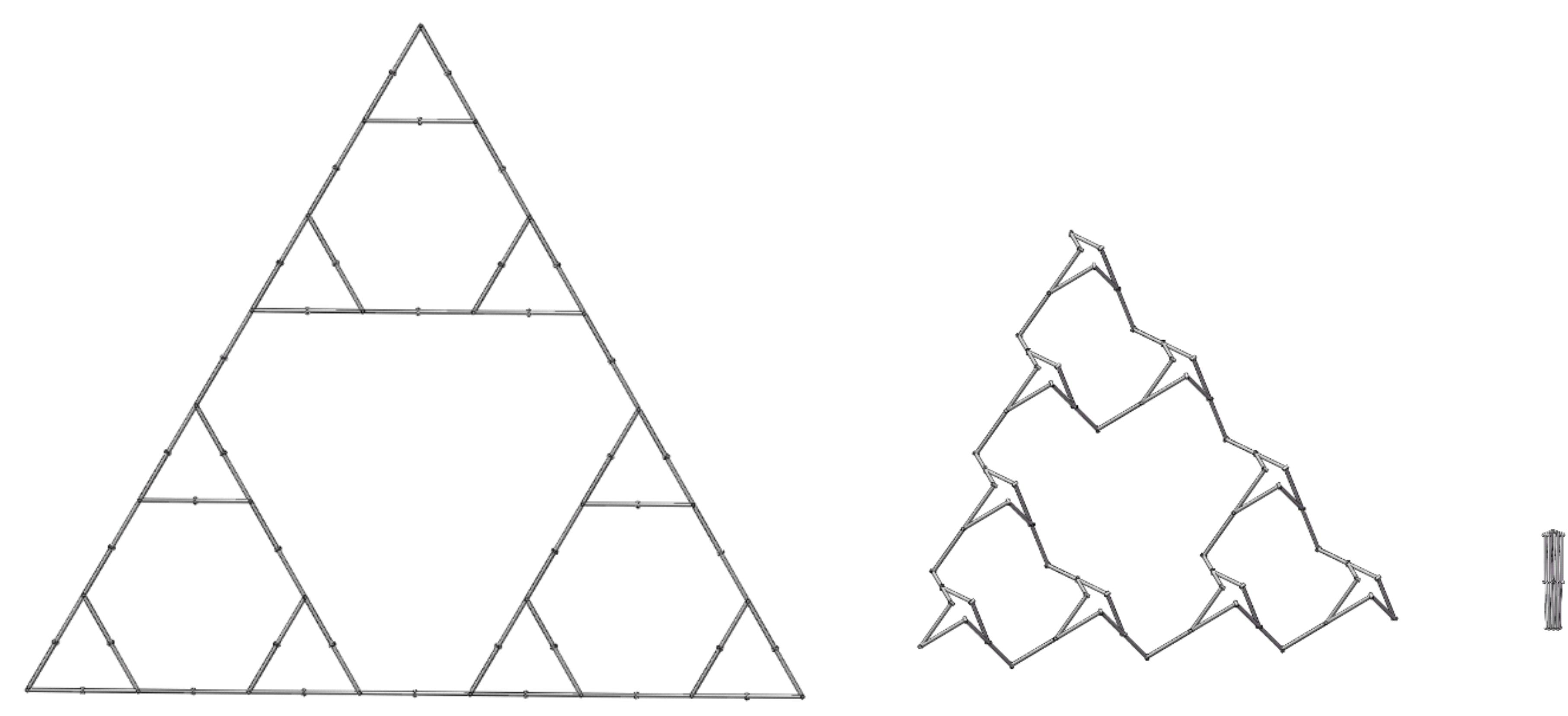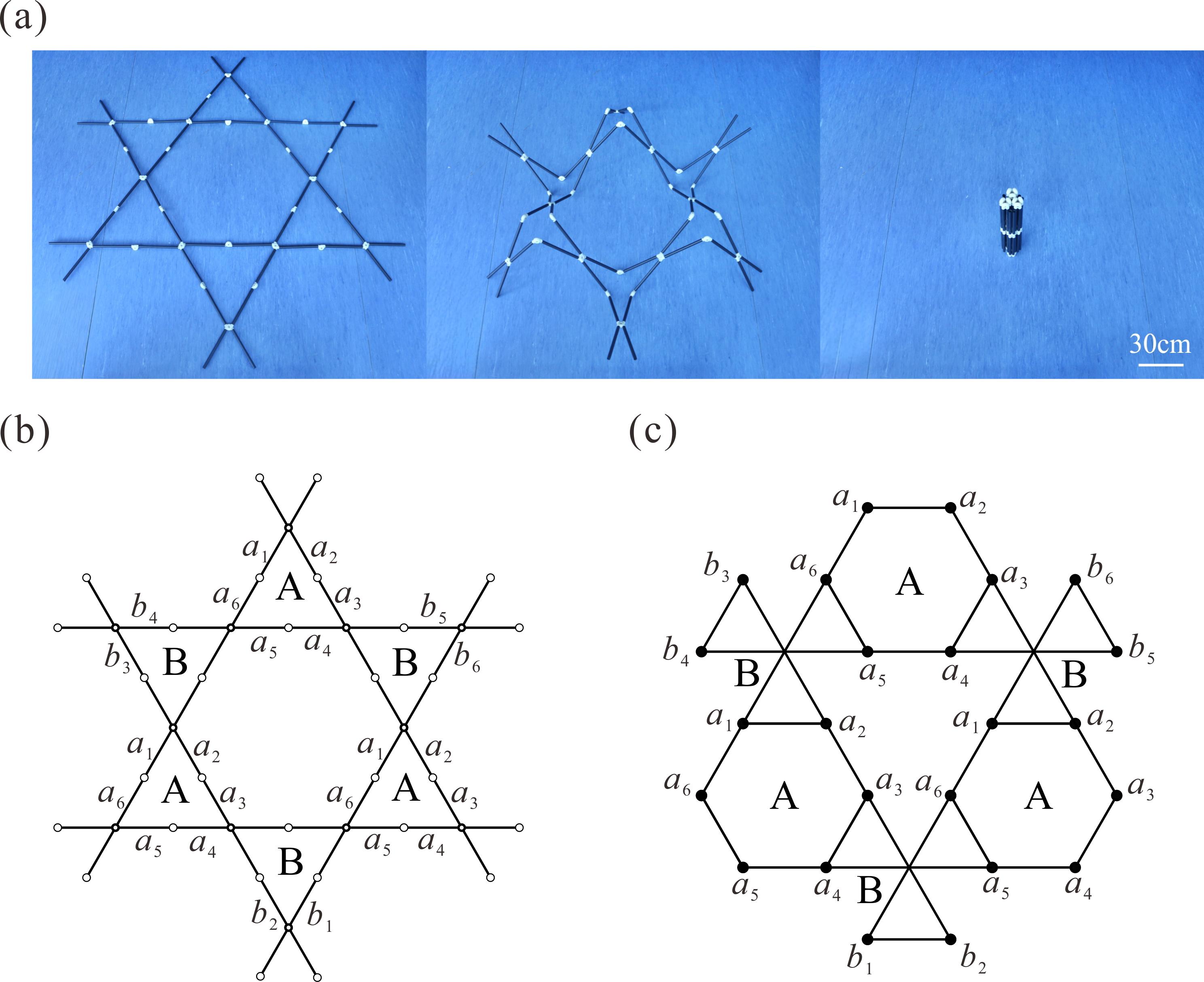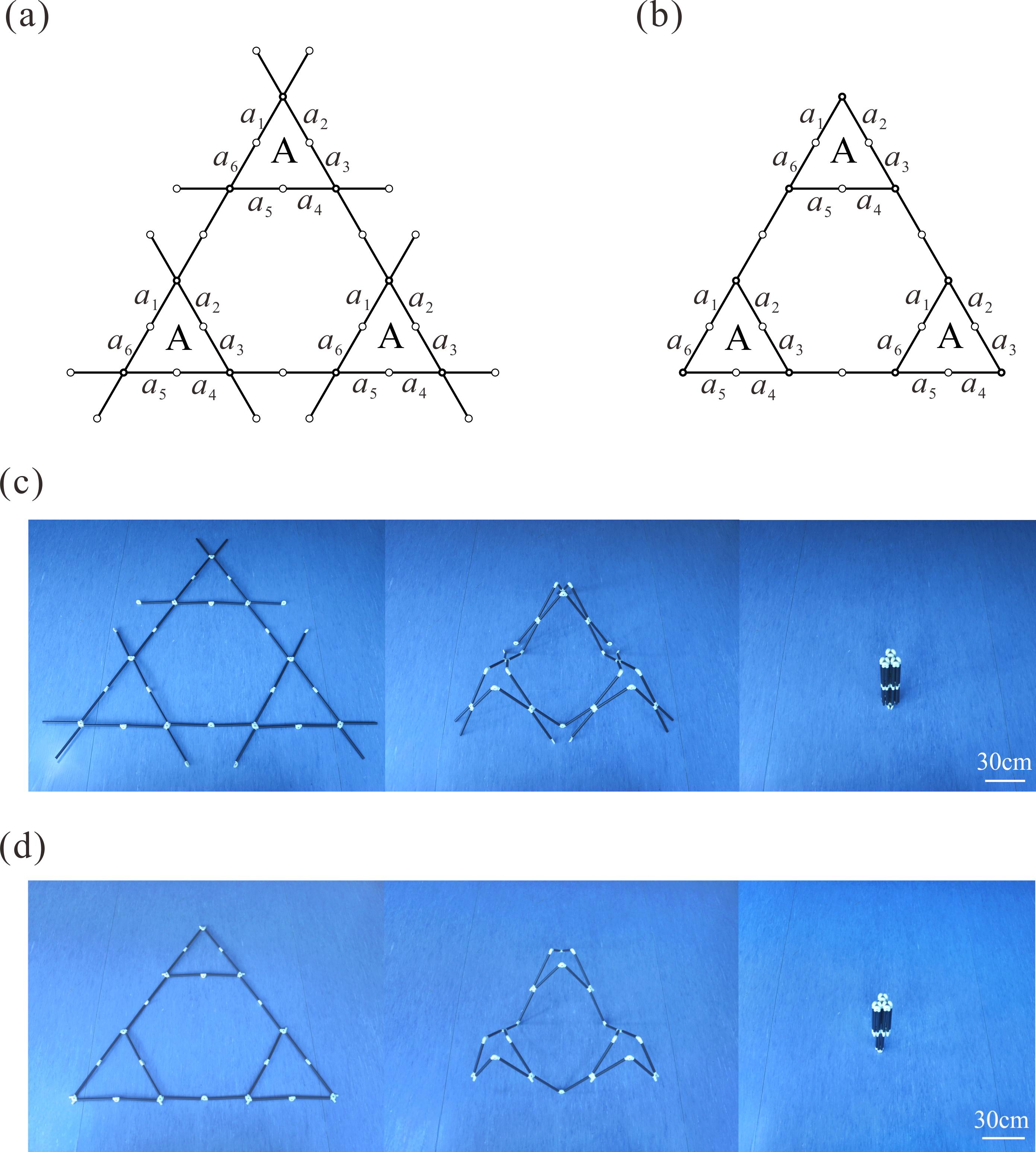 From: Date: 2026-03-11 Overconstrained mechanisms can achieve large deployment ratios with fewer rigid links and obtain higher stiffness, showing broad application prospects in the design of large-scale space deployable structures. However, the ideal geometric constraint conditions in overconstrained mechanism networks are difficult to satisfy. The presence of numerous overconstraints generates additional internal loads, leading to hindered or even impossible movement of the deployable structure, thereby reducing its reliability. Therefore, it remains a significant challenge to downgrade the original overconstrained mechanism networks into less-overconstrained mechanism networks while preserving the original deployable motion through kinematic strategies. Recently, the research team of Prof. Chen Yan from the School of Mechanical Engineering at Tianjin University took the threefold-symmetric Bricard linkage networks as the research object, and performed mechanism topology simplification operations, constructing a less-overconstrained one-DOF mechanism network with motion equivalence. This work was published online in the Journal of Mechanisms and Robotics on February 24, 2026. The corresponding author of the paper is Prof. Chen Yan of Tianjin University, and the first author is Dr. Gu Yuanqing. This research was supported by the National Natural Science Foundation of China and the Tencent Foundation. Using the threefold-symmetric Bricard linkage as the basic unit, a one-DOF mechanism network can be constructed based on the mechanism network motion coordination theory and the geometric covering method, as shown in Figure 1. From the mechanism schematic and topology diagram, it can be seen that this one-DOF mechanism network contains 24 links and 30 revolute joints, with the overconstraints of 13. Figure 1 One-DOF threefold-symmetric Bricard mechanism network On this basis, overconstraint reduction in multi-loop mechanism networks is achieved through mechanism topology variation strategies. First, the reduction prerequisites for mechanism networks are proposed: (1) the kinematic characteristics, including the degree of freedom, remain unchanged; (2) the geometric dimensions of the outer contour after deployment remain essentially unchanged; (3) each point in the topology diagram requires at least two connections to form a closed-loop mechanism. For this purpose, the mathematical concept of a Hamiltonian path is introduced, as shown by the red line in Figure 2a. Observing the topology diagram of the mechanism network, the reduction prerequisites mainly involve three A linkages and only one hinge of each B linkage. Therefore, an attempt is made to remove the redundant links and hinges at the three B linkages. The simplified topology diagram is shown in Figure 2b) containing only three A linkages, with adjacent mechanisms connected by only one hinge. Figure 2 Topological reduction of the mechanism network Mapping the topology diagram to the mechanism schematic, the less-overconstrained mechanism network after removing redundant constraints is shown in Figure 3a, with its deployment area essentially unchanged. Furthermore, a less-overconstrained mechanism network with a regular geometric shape can be obtained (Figure 3b). Using screw theory to verify the degree of freedom of the simplified mechanism network, it is proven that the less-overconstrained mechanism network retains the original one-DOF threefold-symmetric motion characteristics. While achieving motion equivalence, the overconstraint number in the mechanism network is reduced from 13 to 4. Its folding process is shown in Figures 3c and 3d. Figure 3 One-DOF threefold-symmetric Bricard mechanism network after overconstraint reduction Using the original mechanism network in Figure 1 as the building unit C, a large-scale Bricard mechanism network as shown in Figure 4a can be constructed, also exhibiting one-DOF threefold-symmetric motion characteristics. Based on the overconstraint reduction strategy, the topology diagram of the large-scale mechanism network and the reduction prerequisite (red line) are shown in Figure 4b, ensuring that the deployment working area of the simplified large-scale mechanism network remains essentially unchanged. Then, based on the less-overconstrained form of building unit C (Figure 2b), the three building units C in this large-scale network are respectively simplified into one-DOF less-overconstrained building units C' (Figure 4c), ultimately constructing the large-scale less-overconstrained Bricard mechanism network shown in Figure 4d. Here, adjacent one-DOF less-overconstrained building blocks are connected by only one revolute hinge. The obtained large-scale mechanism network also maintains the original one-DOF threefold-symmetric motion characteristics (Figure 5), and the overconstraint number is reduced from the original 55 to 13. Furthermore, the overconstraint reduction strategy can be extended to multi-level, ultra-large-scale Bricard mechanism networks, as shown in Figure 6, significantly removing redundant constraints within the ultra-large-scale mechanism network. Figure 4 Overconstraint reduction of the large-scale Bricard mechanism network Figure 5 Folding process of the large-scale less-overconstrained Bricard mechanism network Figure 6 Overconstraint reduction of multi-level Bricard mechanism networks In summary, this work proposes an overconstraint reduction strategy for complex mechanism networks based on mechanism topology variation methods, constructing a less-overconstrained form of the threefold-symmetric Bricard mechanism network while preserving the original one-DOF threefold-symmetric motion characteristics. By altering the topological configuration of the mechanism, this paper constructs a new mechanism network that is kinematically equivalent to the original one, providing ideas for reducing the overconstraint degree in mechanism networks and offering a theoretical foundation and t